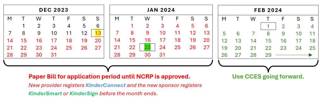 - On 1/23/24, NCRP is approved and can bill for childcare beginning 12/13/23